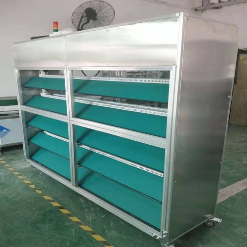 R:自動(dòng)下料裝置:自動(dòng)吸盤+自動(dòng)平移裝置:1套 1.自動(dòng)吸盤:2組(每組配4個(gè)吸盤) 2.寬窄自動(dòng)調(diào)節(jié):配有自動(dòng)壓力傳感器 3.平面輸送:滑動(dòng)導(dǎo)軌+氣動(dòng)頂升裝置 4.控制:自動(dòng)感應(yīng)連動(dòng)系統(tǒng)(無需人工操控) U:接駁臺(tái)(動(dòng)力滾筒線) :1臺(tái) 接駁臺(tái)作用:自動(dòng)滾筒輸送和升降機(jī)自動(dòng)無縫對(duì)接下料 導(dǎo)軌用材:冷板折彎制作,腳架采用方鋼焊接制作,底部安裝可調(diào)腳杯 滾筒:機(jī)械帶軸承滾筒 動(dòng)力:90W電子調(diào)速馬達(dá)