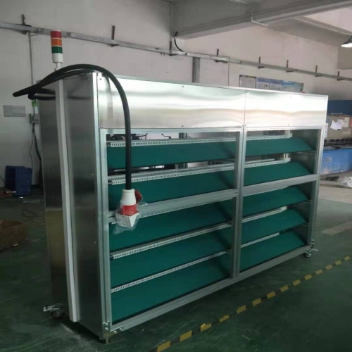Q:上下升降機(jī)L650*W850*H1000mm :2臺(tái) 主支架用材:采用40*40鋁材作主框架.(加強(qiáng)型) 封板:冷板折制,表面烤漆. 動(dòng)力結(jié)構(gòu):頂伸氣缸 支架:冷板折制。 主架:鋼板折彎焊接,前后各配二套 動(dòng)力:電子調(diào)速馬達(dá) 輸送部分主動(dòng)輪:機(jī)架成型 運(yùn)行方式:正反運(yùn)行 皮帶規(guī)格:W50*T5(mm),綠色防滑皮帶, 2條 層托采用A3鋼層托