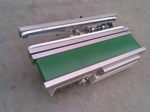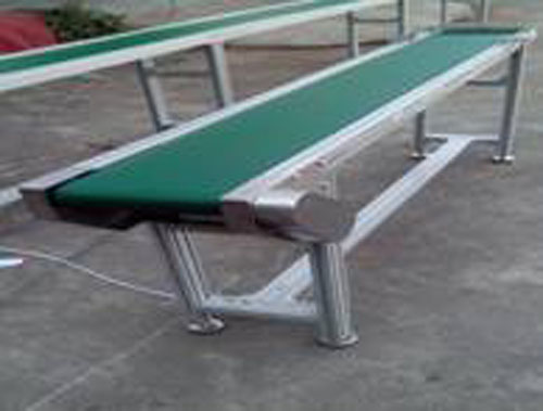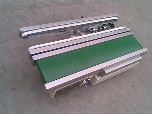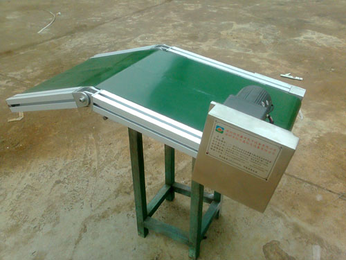 皮帶:寬度自定,綠色防靜電,采用無縫熱熔接駁;承托采用Φ25鍍鋅帶軸承滾筒,上層間隔250mm一條,下層間隔2m一條。