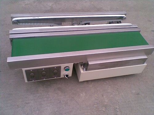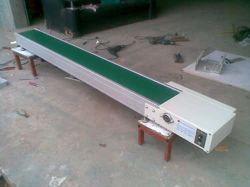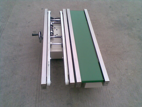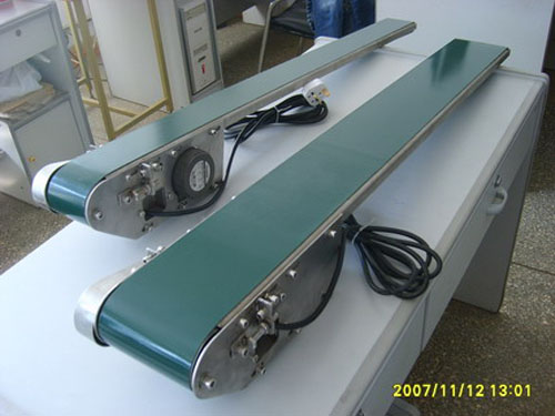 輸送:采用綠色防靜電皮帶輸送,無縫熱熔接駁成環(huán)形,寬度自定;承托采用Φ25鍍鋅帶軸承滾筒,間隔250mm一條。