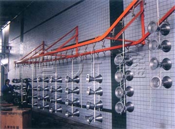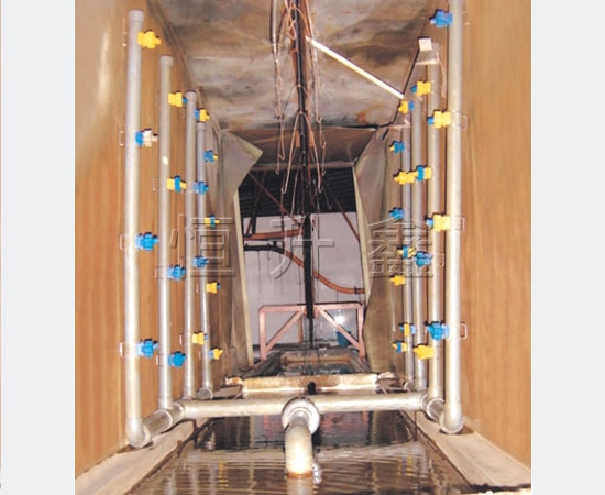 五金噴涂線實(shí)景 噴淋式前處理 鮮風(fēng)過濾系統(tǒng)實(shí)景